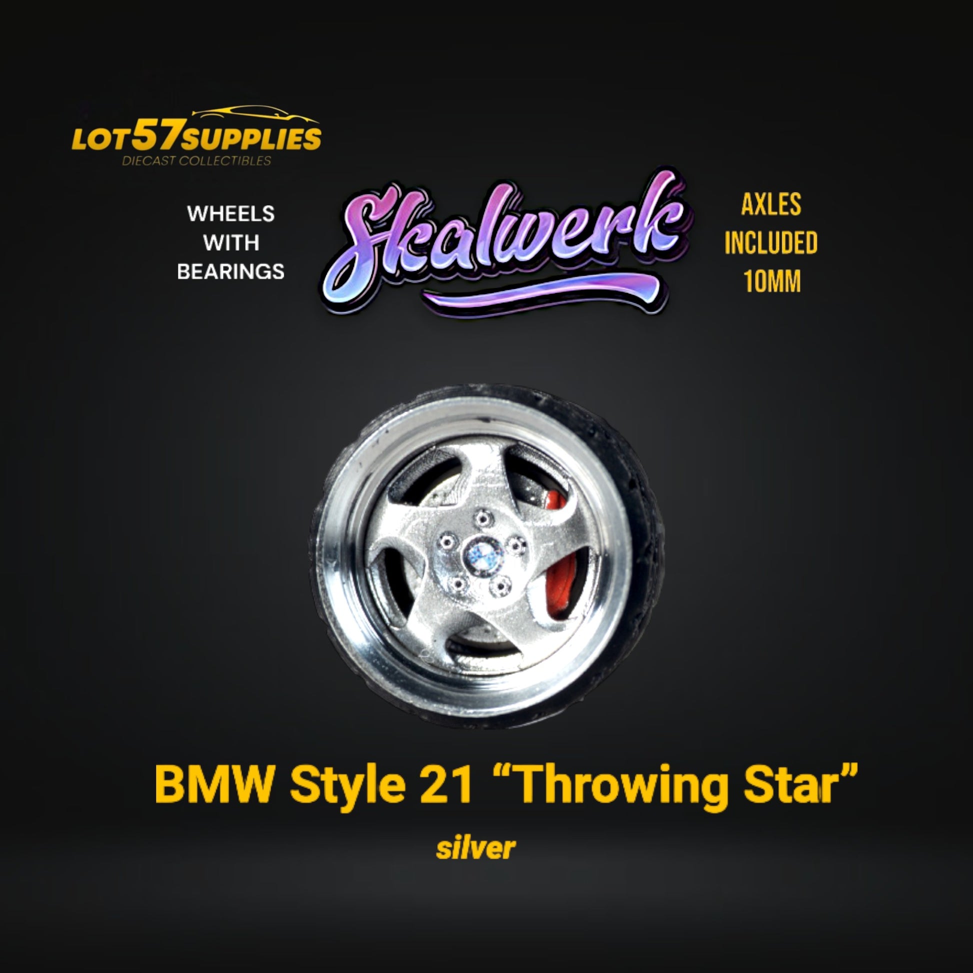 Custom Order Only - Skalwerk - BMW STYLE 21 THROWING STAR - SILVER - 1:64 (1 SET = 4 Wheels)