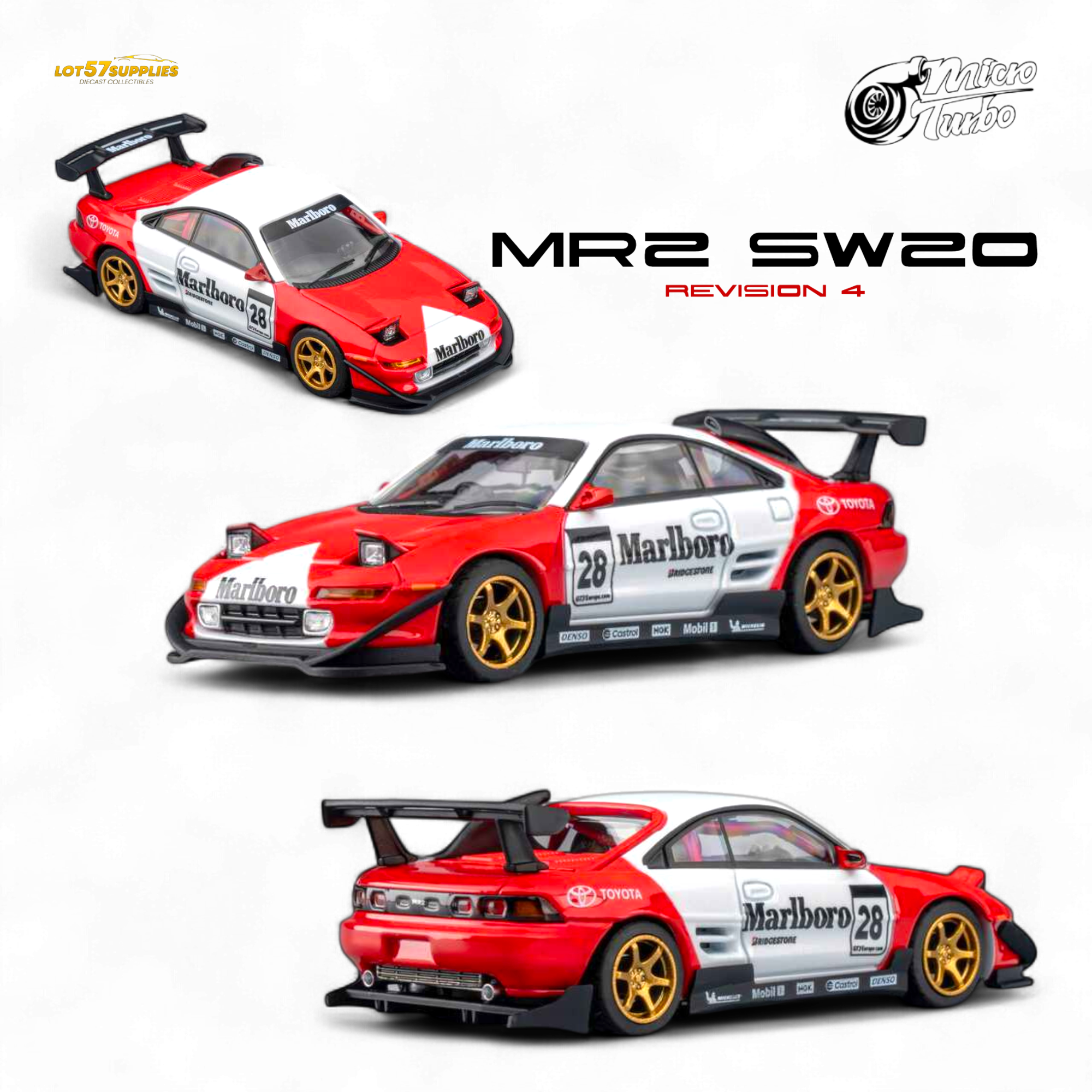 Features: Classic Marlboro livery with new body kit, flip-action headlights, smooth-rolling chassis, realistic suspension, roll cage interior, triple gauges