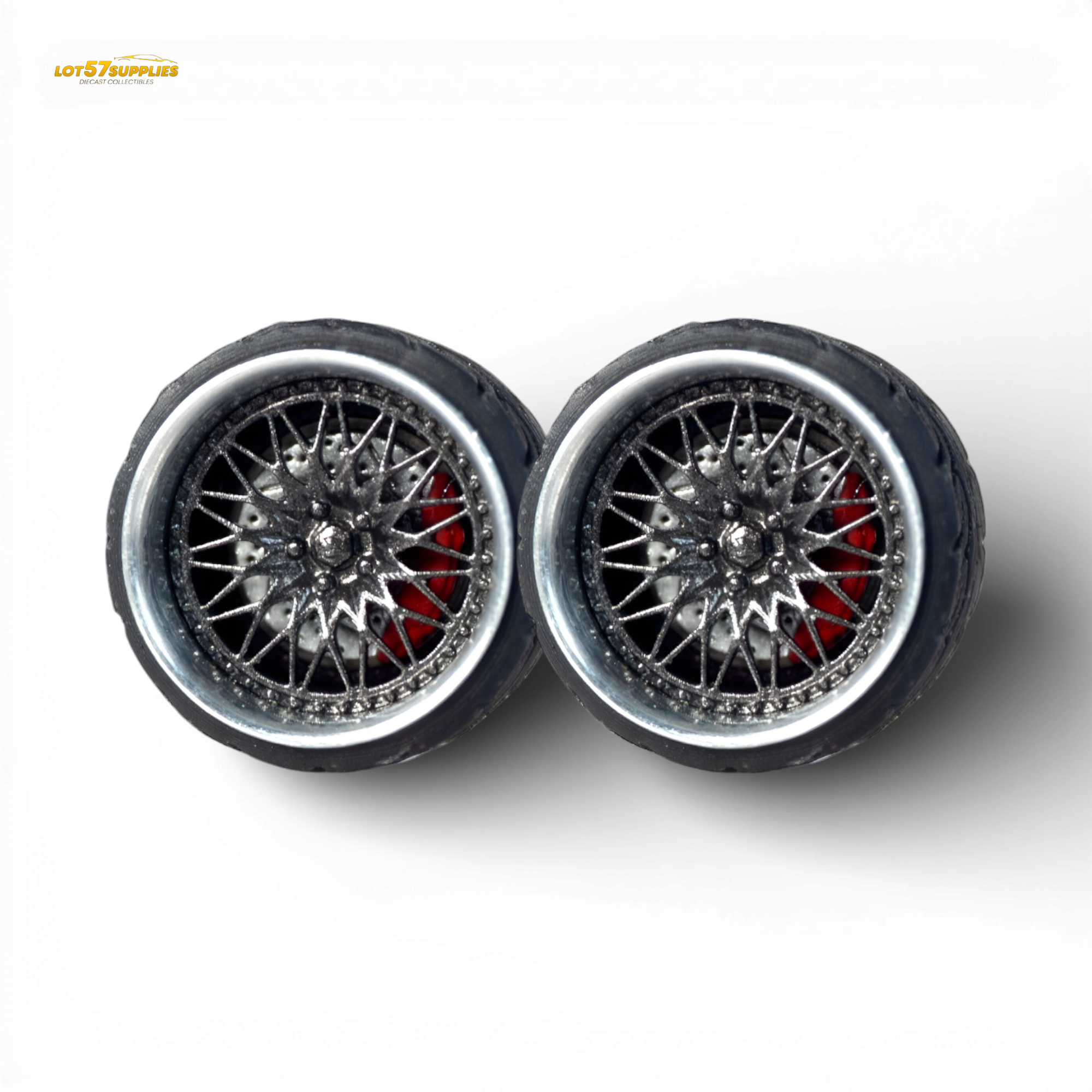 These 1:64 scale wheels from Skalwerk are designed to fit most 1:64 scale models. Each set includes 4 wheels and 2 axles.