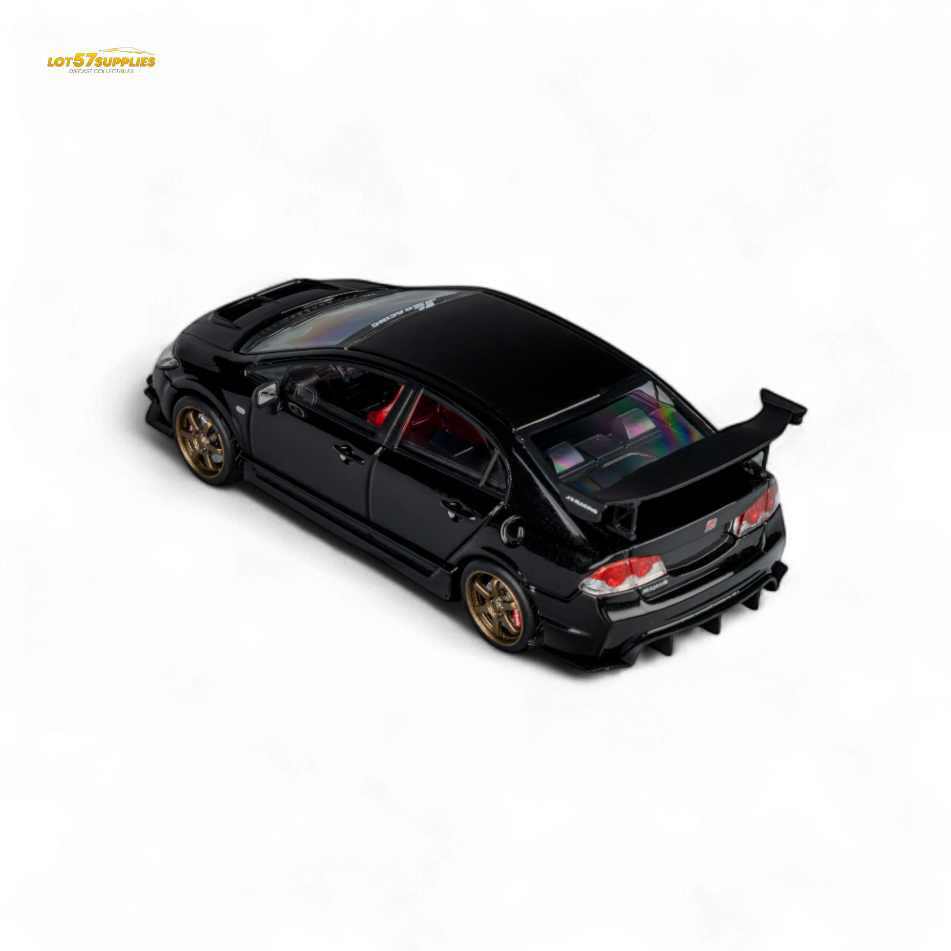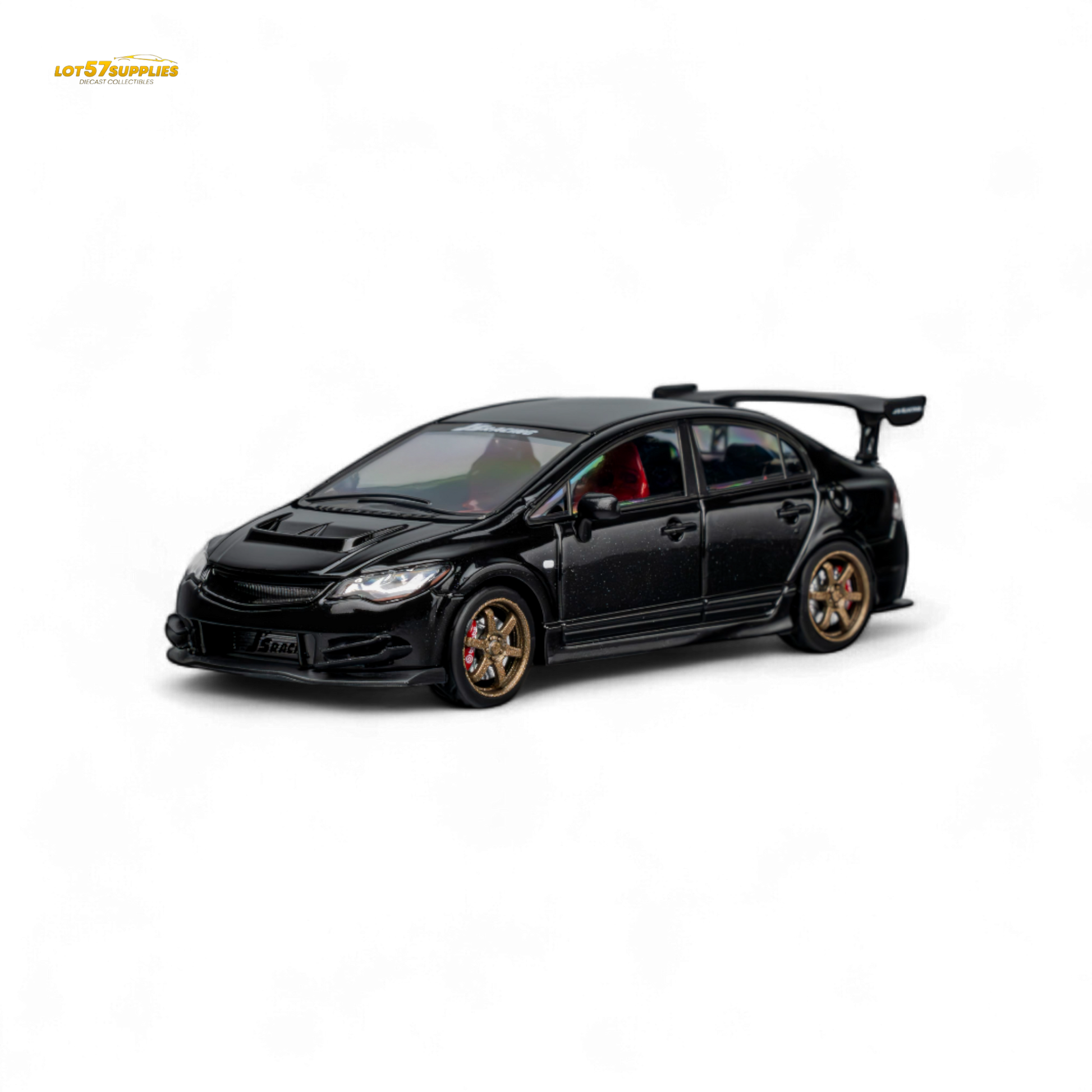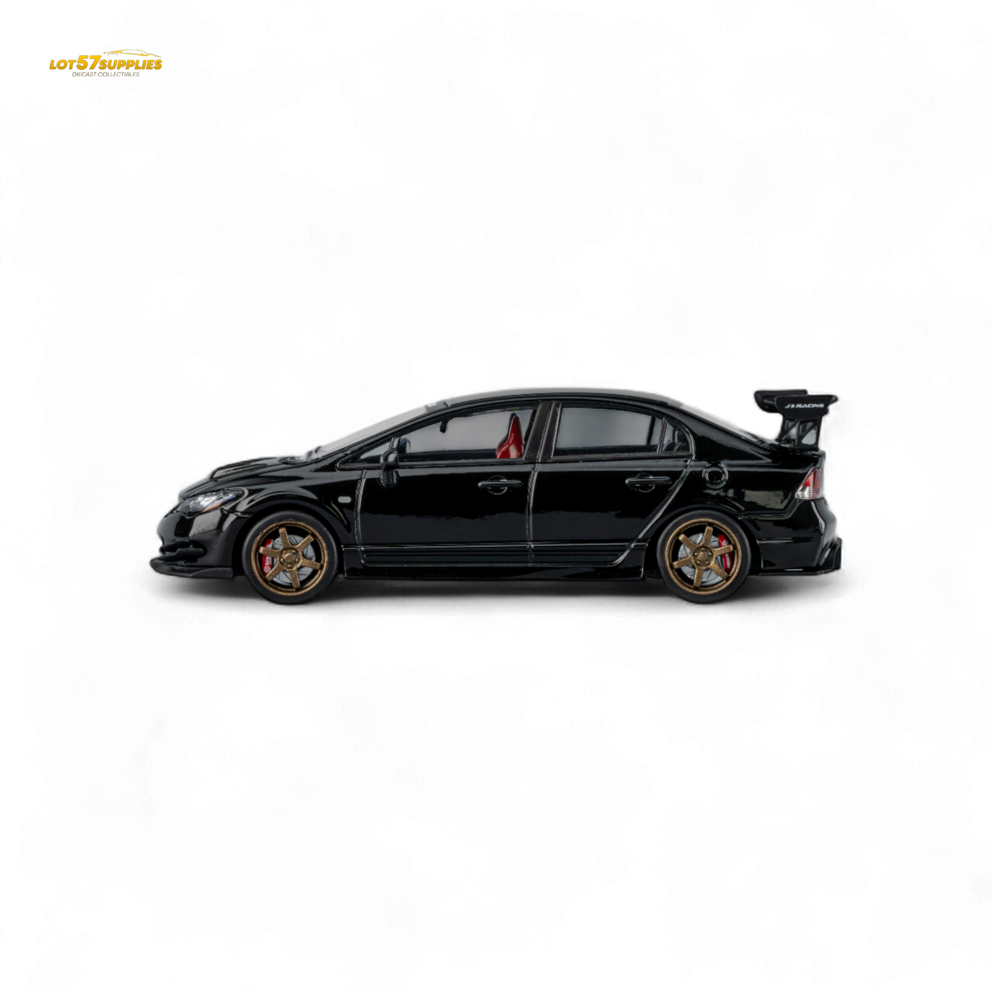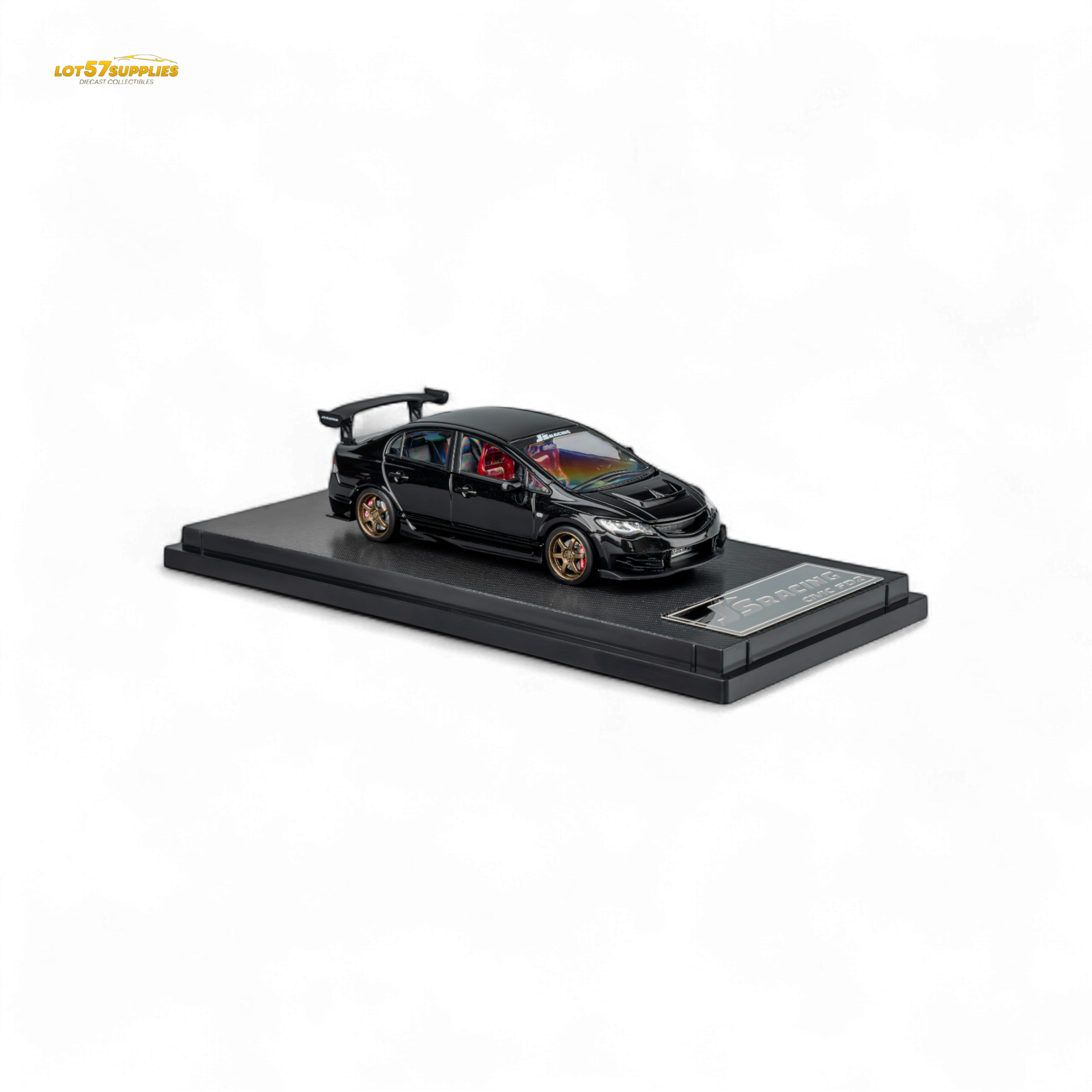 J’S Racing kit with metallic black accessories. Features a flexibly detachable openable hood, detailed independent engine, and a multi-color detailed interior.