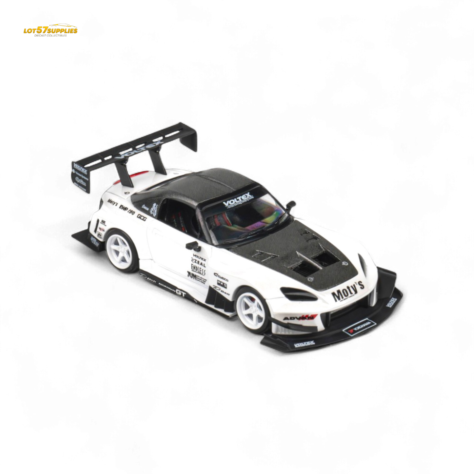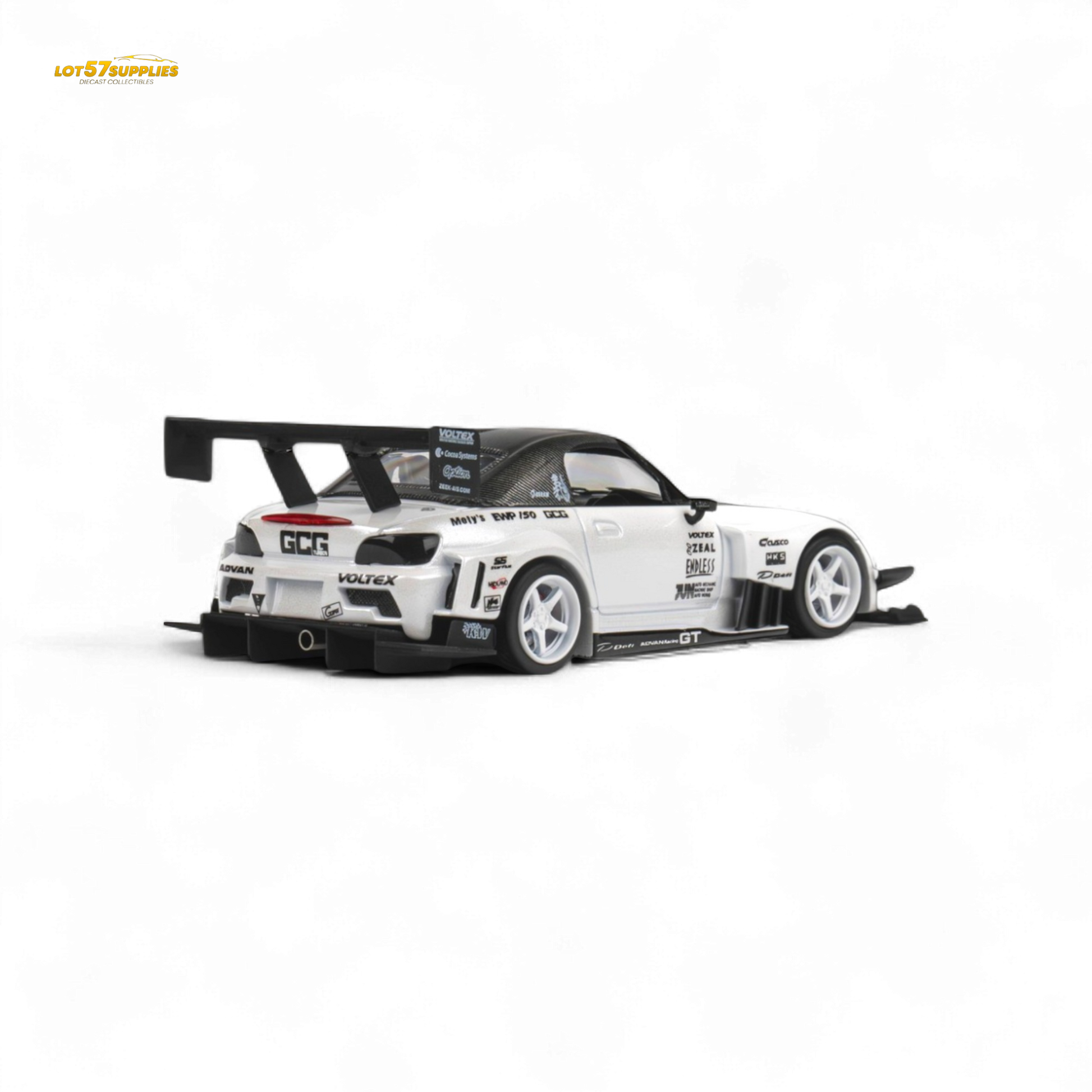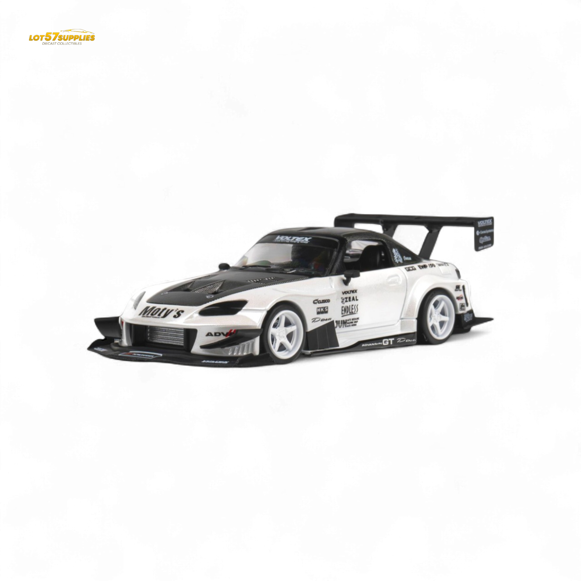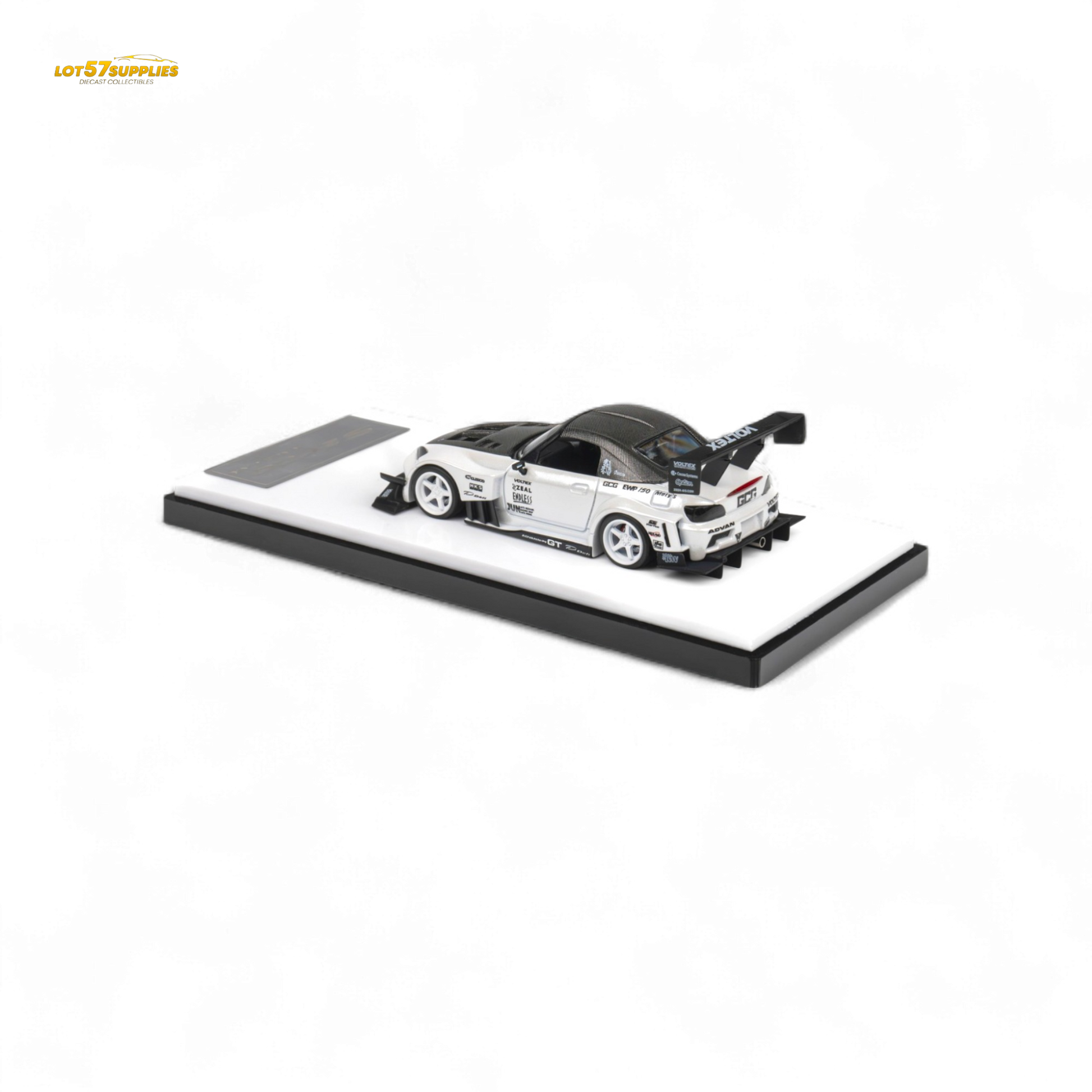 Detailed 1:64 scale diecast model of the Microturbo Custom S2000 in Metallic White. This collectible features precise craftsmanship and authentic design, perfect for enthusiasts and collectors. Ideal for display and model collections.