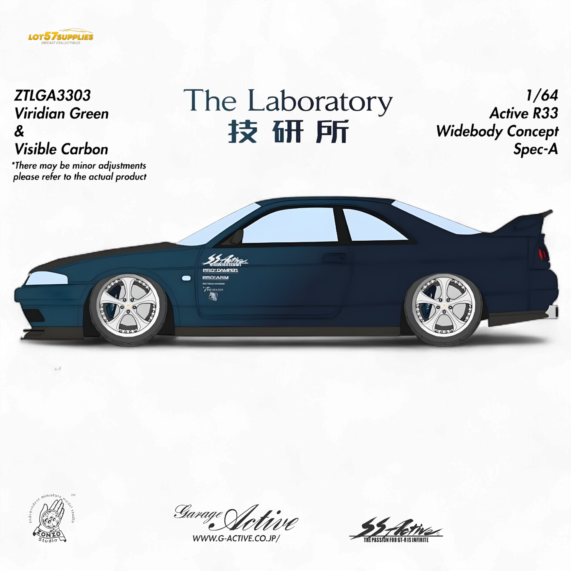 The Laboratory x ZONZO presents the 1:64 Active R33 Widebody Concept Spec-A — a stunning resin-cast tribute to one of Japan’s most iconic builds. Each unit features a meticulously crafted widebody silhouette, aggressive aero details, carbon accents, and a show-car stance straight from the streets of Japan. Precision-molded in high-quality resin with deep attention to proportion and finish, this model captures the spirit of Garage Active’s legendary R33 in miniature form.